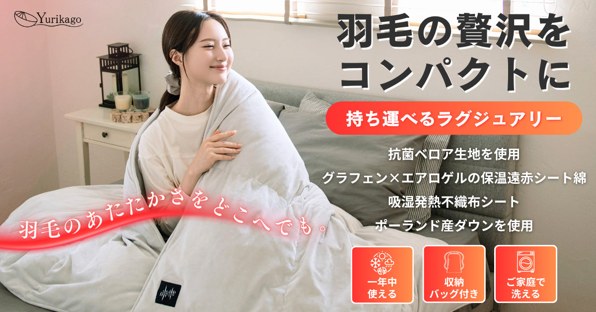 Yurikagoならではの手軽にどこでも使えて快適に眠れる掛け布団が新登場。