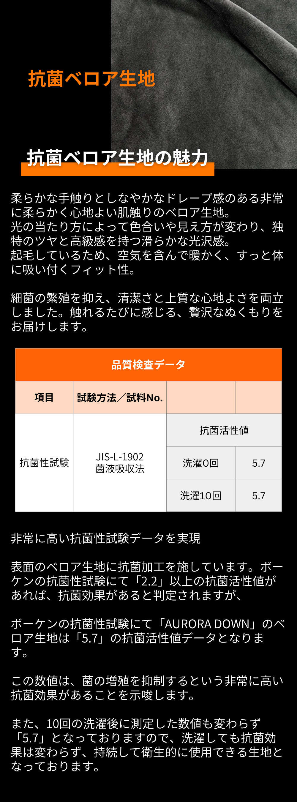 抗菌防臭ベロア生地(両面):ポリエステル95% ポリウレタン5% 目付210g