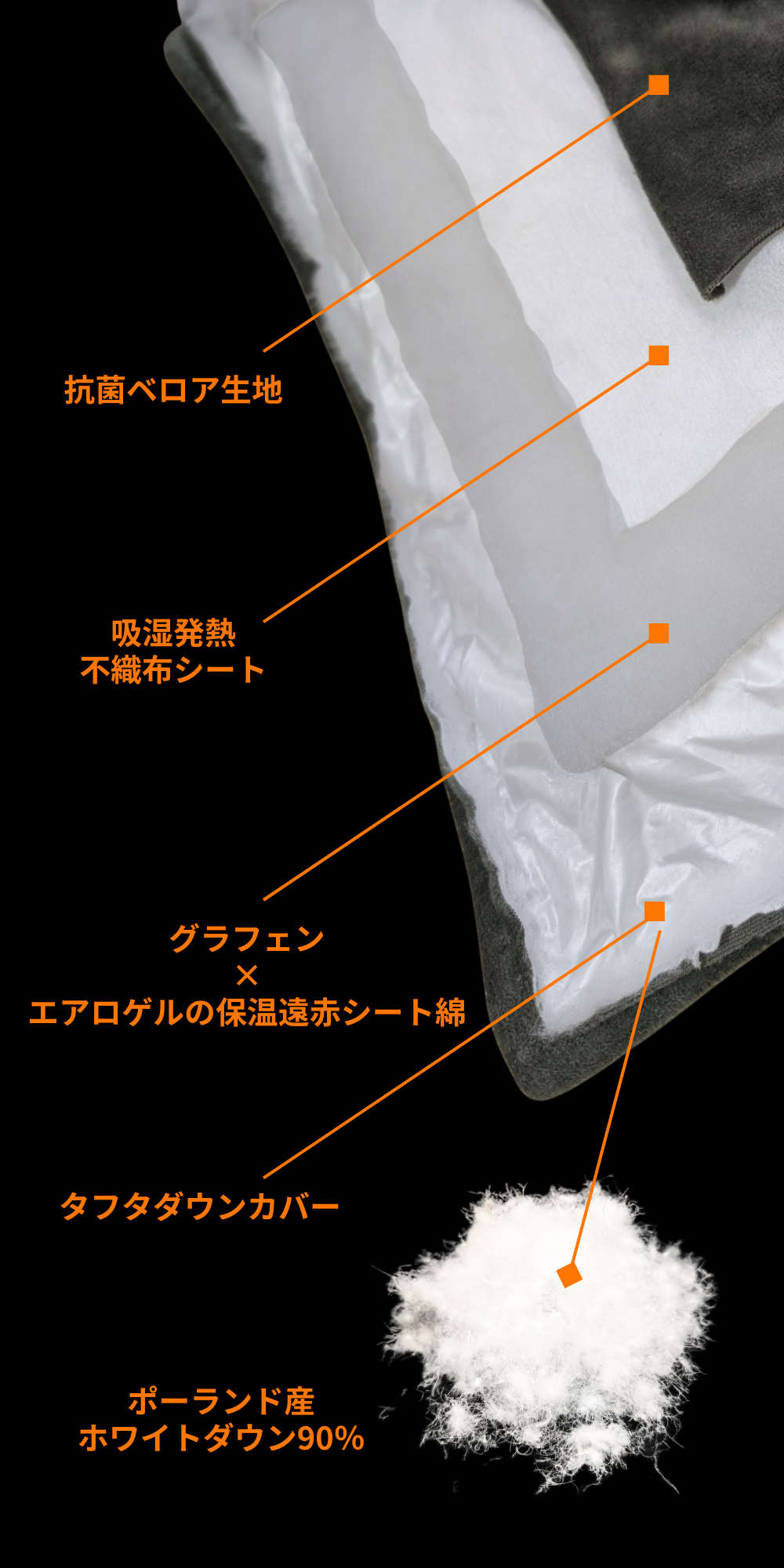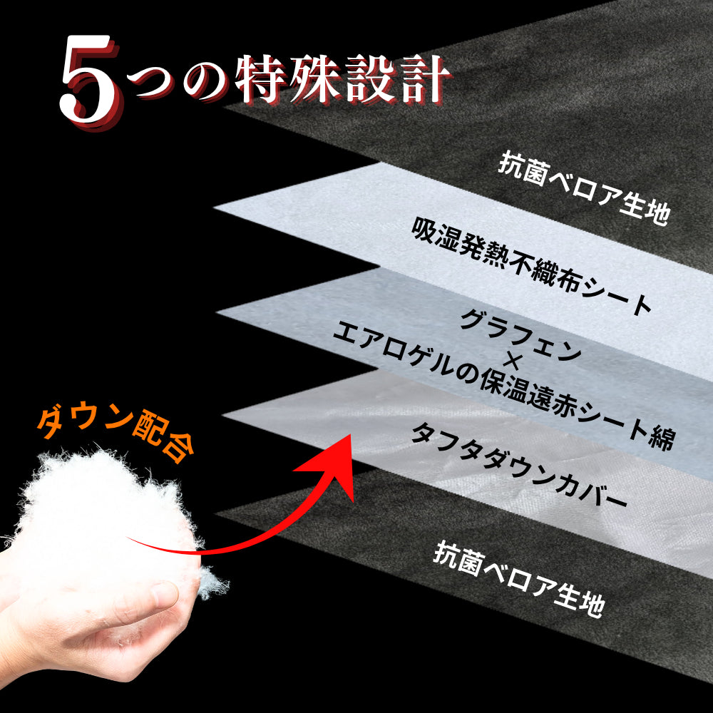 コンパクトでもこだわり抜いた5つの特殊設計で「どこでも極上の眠りへ」リビングでも寝室でも。暖かさはもちろん肌触り・寝心地抜群。さらに抗菌仕様で衛生的に使えて、かつ手軽に洗えて清潔に。アウトドアや車中泊。来客や防災用としても手軽に持ち運べる快適さをイメージして実現しました。