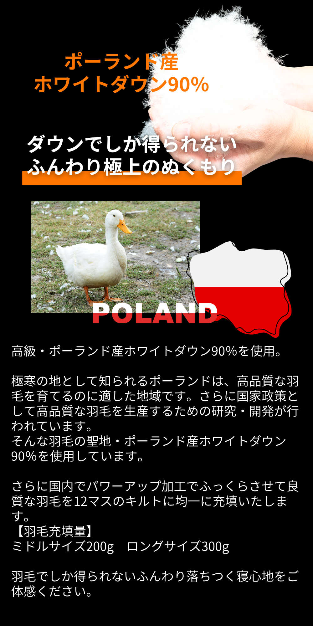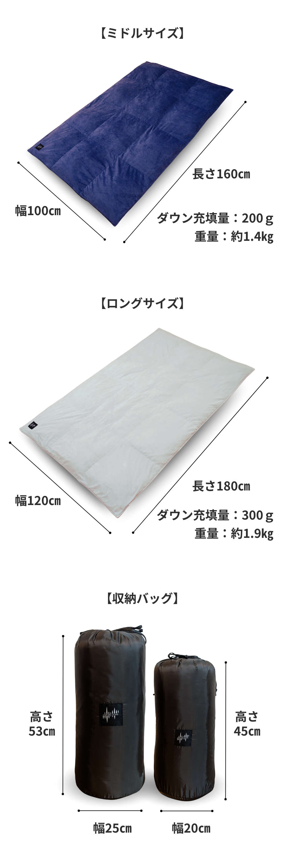 ※ダウン充填量 ミドル約200g ロング約300g