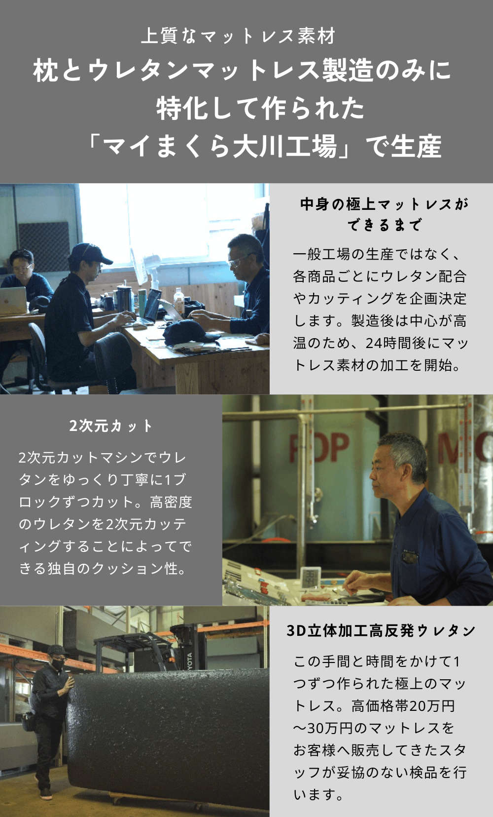 福岡県大川市のマットレス製造工場にてご注文後に1枚ずつ丁寧に仕立てる受注生産商品となります。