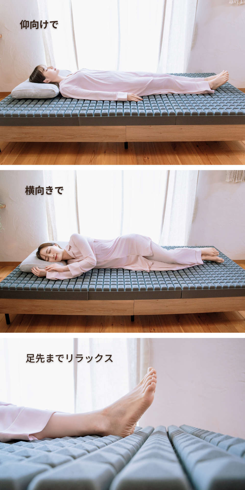 横向きの寝姿勢でも負担のかかりにくい設計へ。