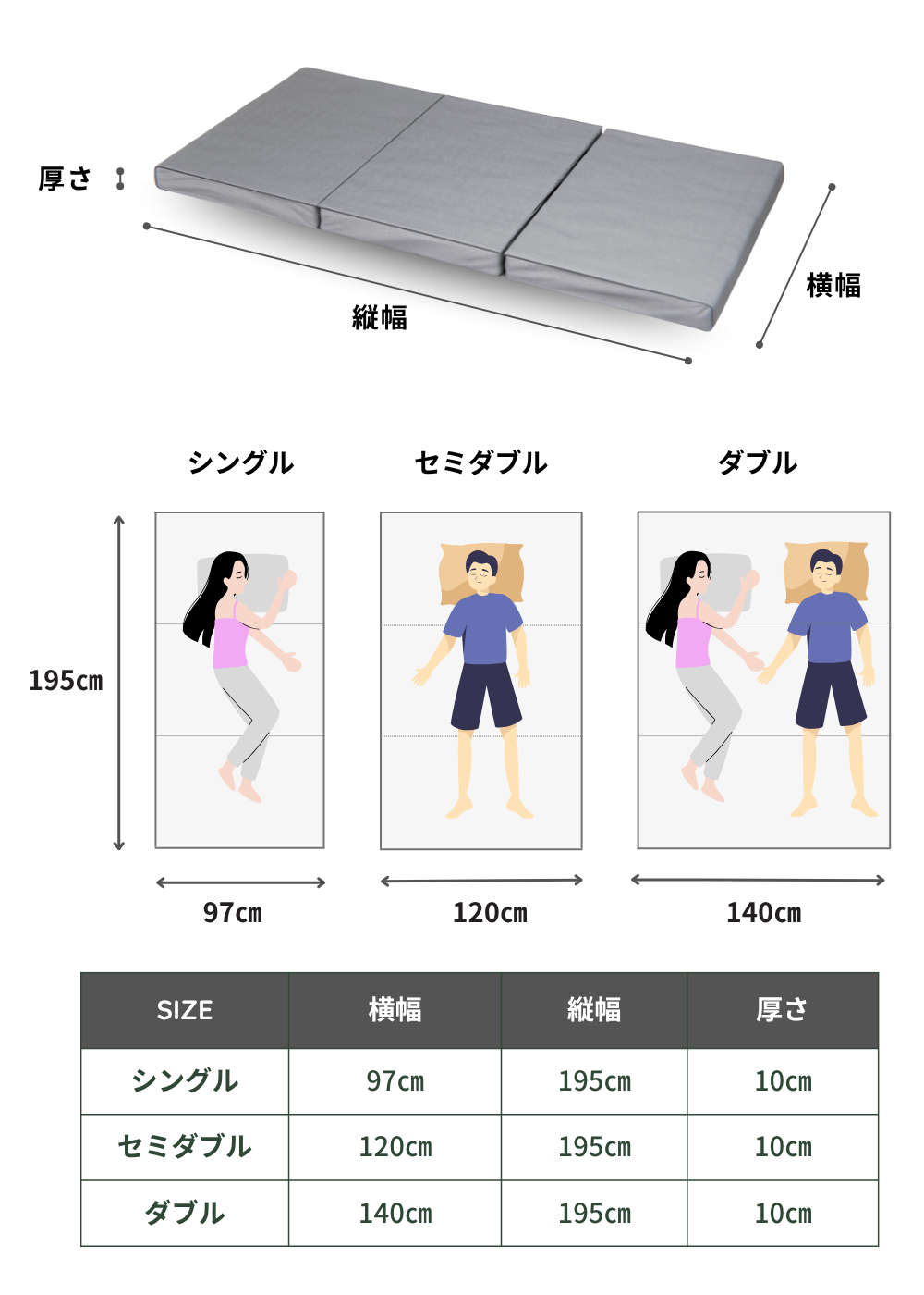 横幅97cm×縦幅195cm×厚さ10cm
