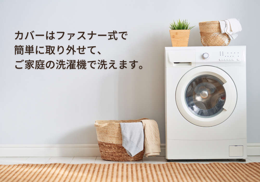 カバーは洗濯可能です。L字ファスナーで簡単に中身の着脱ができてお洗濯できます。
