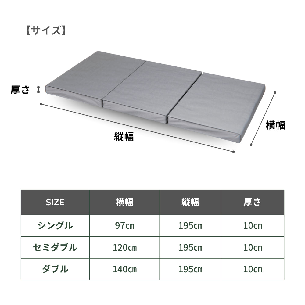 厚さ10cmで全身をしっかりサポート。厚すぎず手軽に移動できる重量はシングルサイズで約5.5kg。
