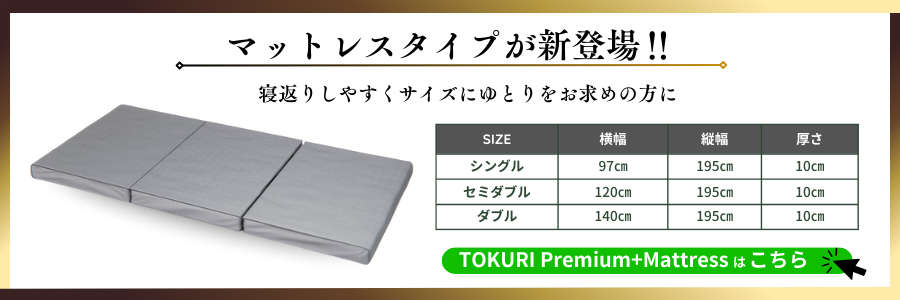 コンパクトタイプではなく、通常のマットレスサイズをご希望の方はTOKURI Premiam+ Mattressをご利用ください。